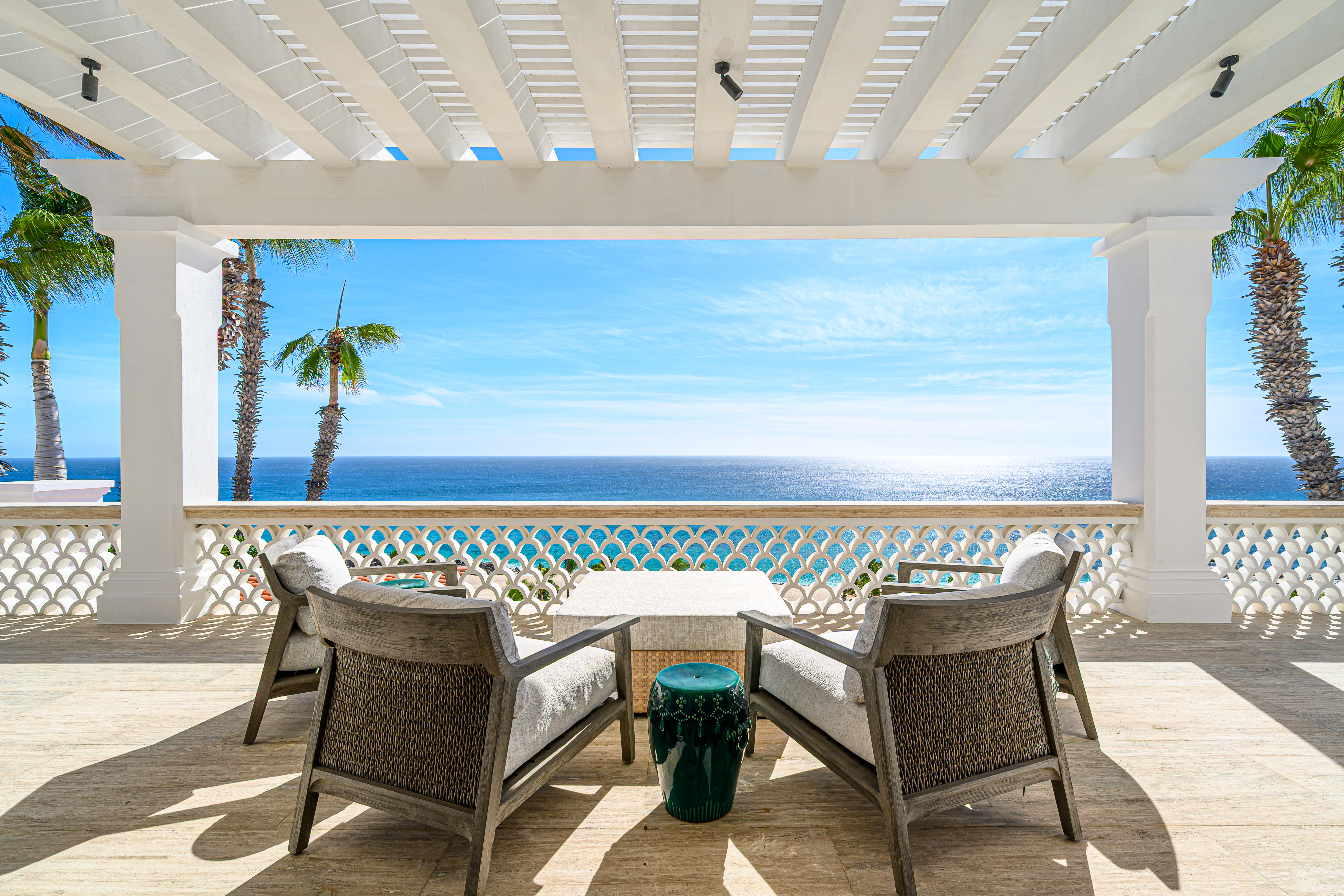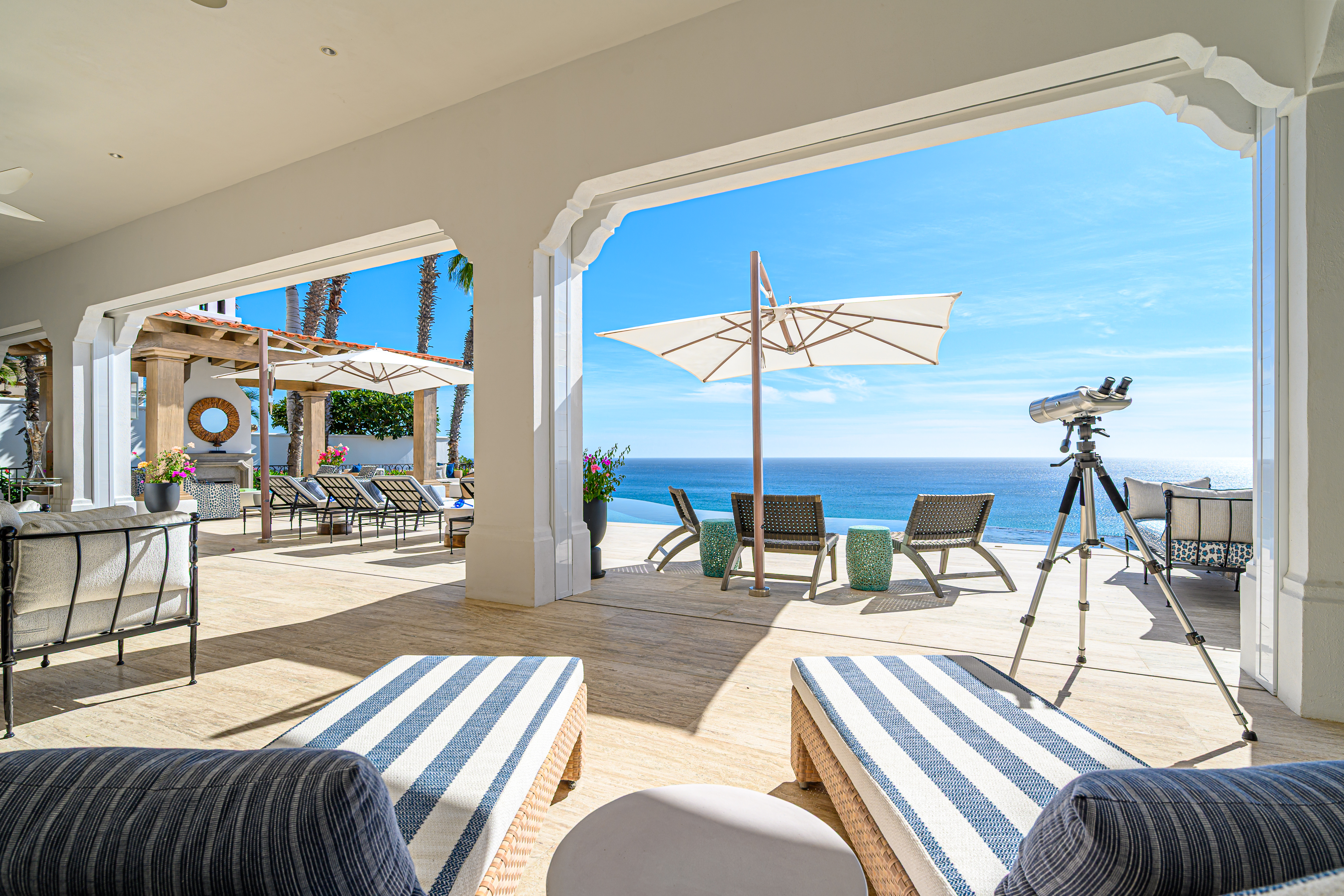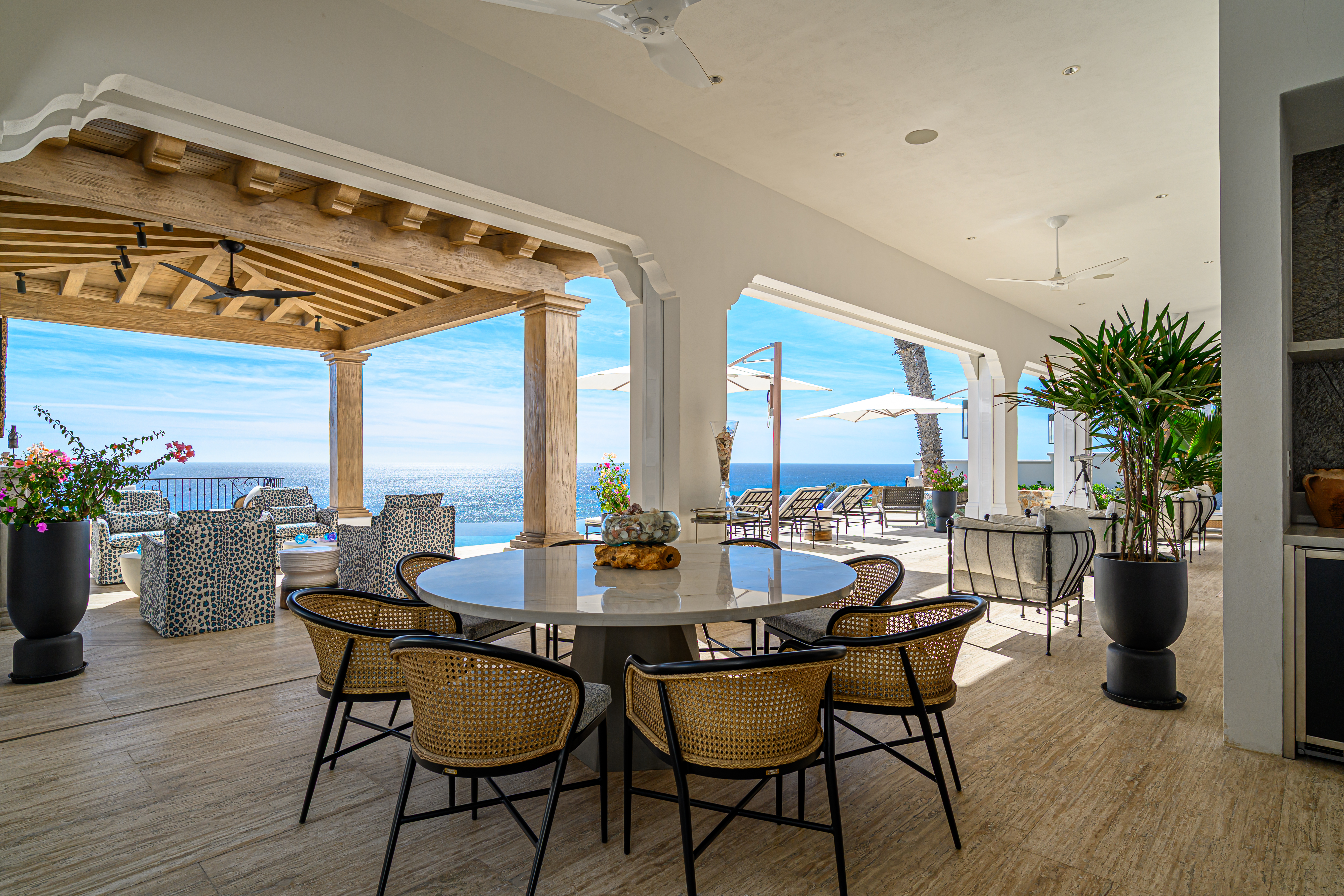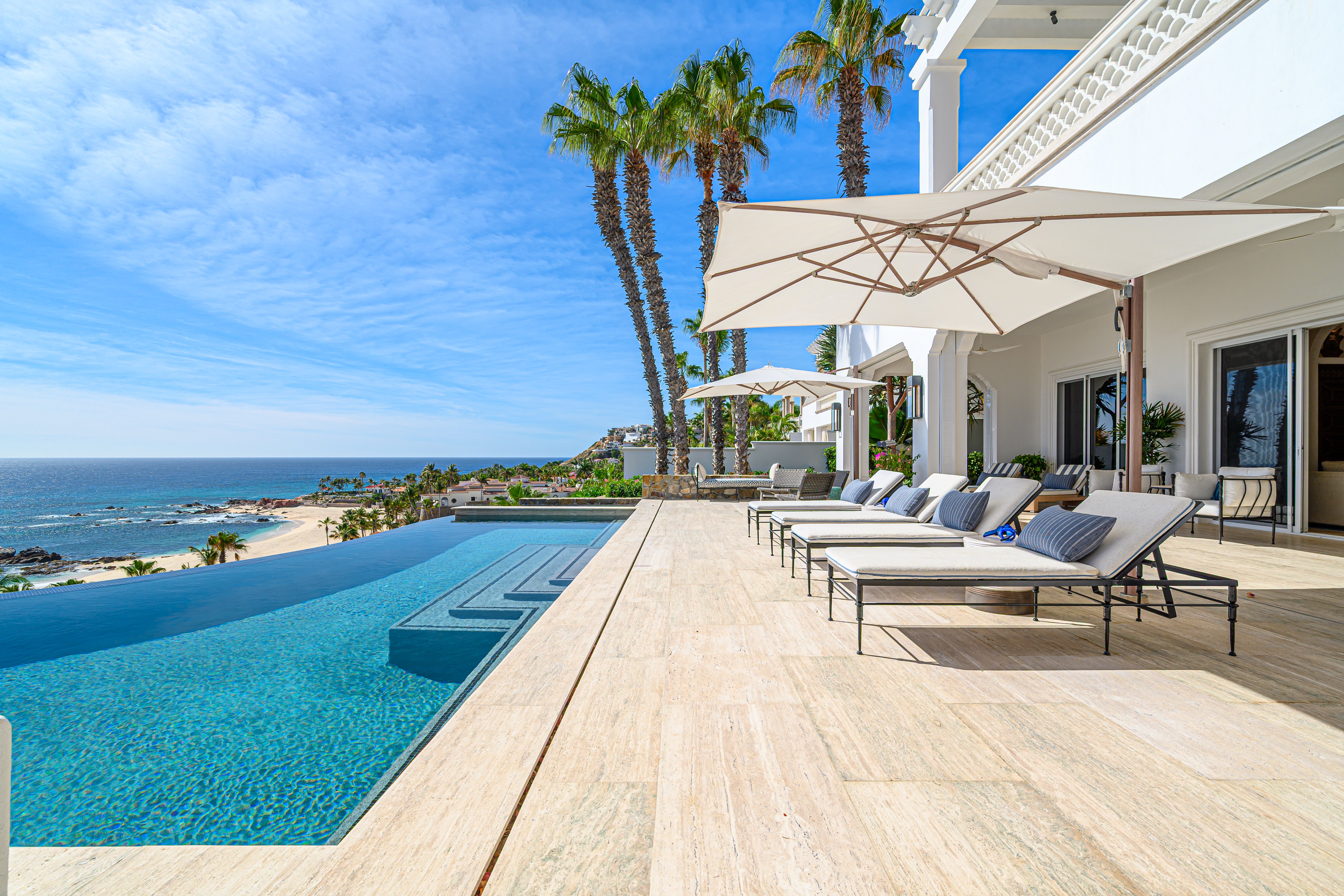 Estate Villa 495 was thoughtfully tailored to embrace Cabo’s natural rhythm and indoor-outdoor way of living. A complete redesign of the sun-filled pool deck brought new life to the home while preserving the memories already made. Set cliffside, just one row off the beach, the setting feels peaceful and expansive, where ocean air and open views naturally invite you to slow down.